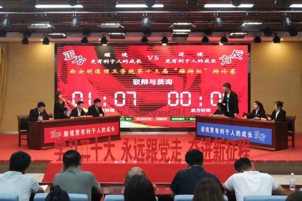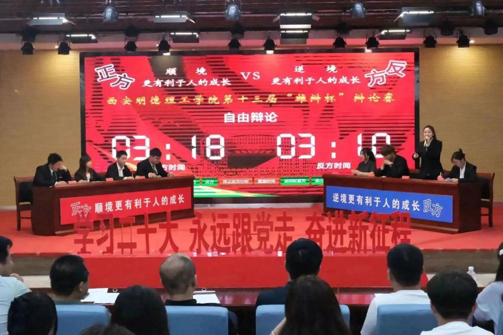 比赛伊始,全体起立,奏唱团歌。随后主持人宣读比赛规则,辩论双方就“顺境更有利于人的成长/逆境更有利于人的成长”这一辩题展开激烈辩论。正方智能制造与控制技术学院认为顺境更能够帮助人们树立自信心,反方语言文化传播学院则认为逆境能够磨练人们的意志和品格。双方开展激烈的辩论,现场掌声连连,比赛氛围迅速升温。