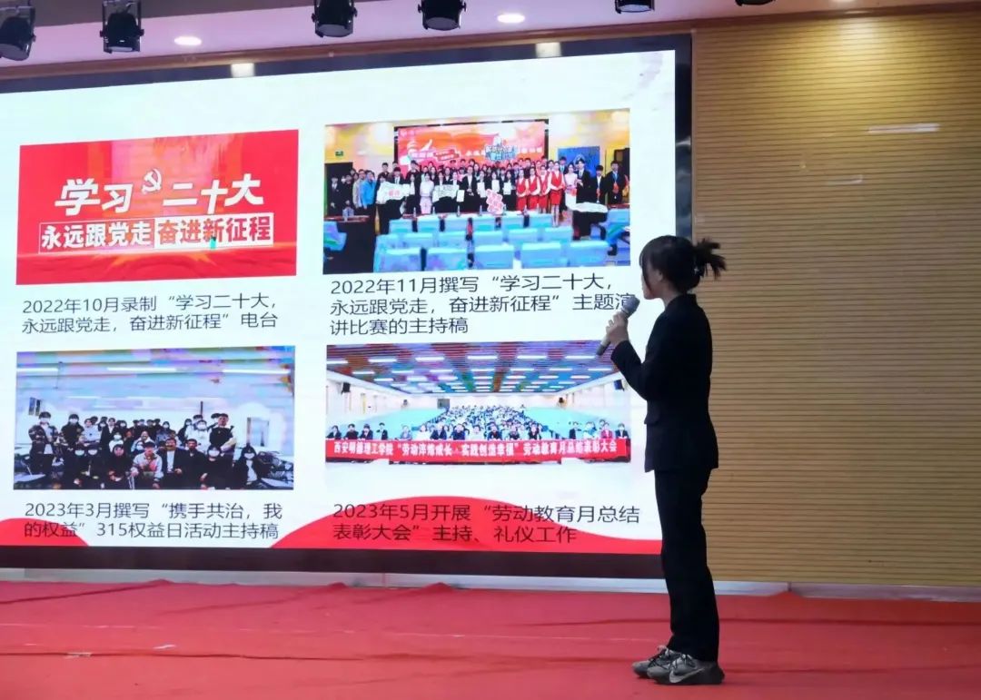 校学生会主席团候选人逐一上台进行答辩。各主席团成员候选人们从个人简历、工作经历、工作优势、未来展望四个方面来阐述自己对校会做出的贡献,并对未来进行展望,对校会未来的发展提出了自己独到的见解。