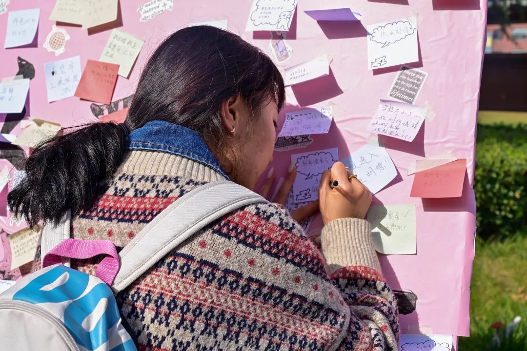 同学将对学校建议和意见写在便利贴上,或通过扫码进行线上权益信箱填写,最终由校学生会权益服务部进行汇总整理,以提案的形式及时反馈给学校相关部门,为校园美好的发展奉献力量。
