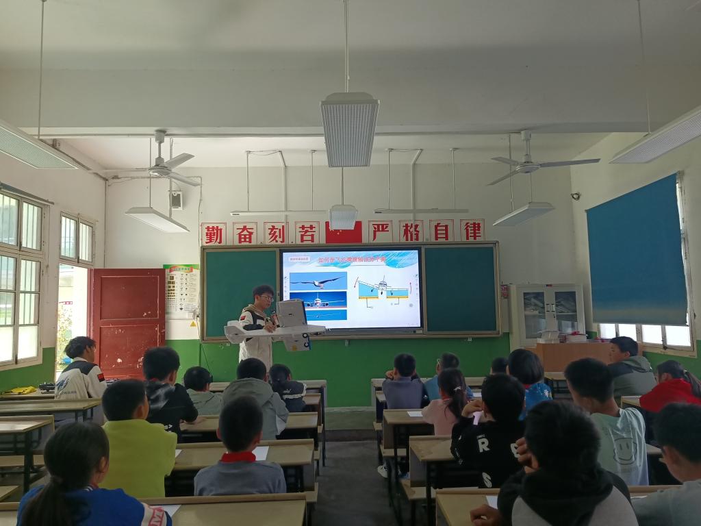 首先,在永新希望小学举办了“捐书筑梦 共沐书香”图书捐赠活动。校团委联合学校图书馆为希望小学捐赠了《读者》《演讲与口才》等8套书籍100余本,让书香传递来自LETOU国际米兰官网的温暖和关爱。书鹭文学社的2位同学为小学生分享了书目《狼王梦》《小王子》,倡导孩子们让读书成为习惯,鼓励小学生们追光而行,为梦想拼搏。学校航模队的4名同学为小学生讲述了航空航天知识、飞行原理、飞行器设计等基础知识,带领孩子们一起制作了纸飞机,在孩子们幼小的心灵种下了航空梦的种子。最后,学校航模队的同学们进行了航模飞行表演,分别展示了:三角翼飞行、单翼拉烟表演、四轴穿越机空中飞行,激发了孩子们对航空探索的求知欲望和崇尚科学的热情。