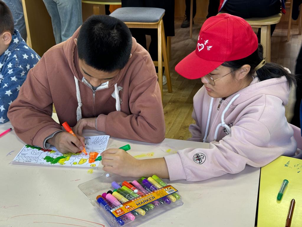 活动的最后,志愿者们为孩子们递上画笔和画纸,耐心地在一旁指导着。孩子们拿起画笔,或大胆或羞涩地在纸上涂抹着色彩,描绘着他们心中那独一无二的美好世界。一幅幅充满童趣的画作在孩子们的小手下诞生,每一笔每一划都可以让我们欣赏到他们眼里五彩斑斓与众不同的世界。