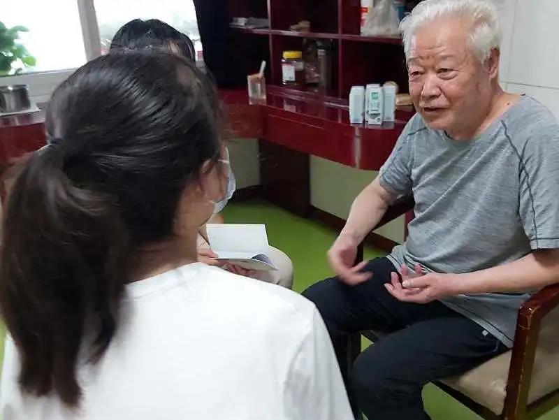 九时十五分,我们一个或两个人一组进入老人房间,开始与老人们深入交流、促膝谈心。这里居住的大多是七八十岁、九十多岁的老人。他们曾经是各行各业的顶梁柱们,如今身体也日渐衰弱,对一些人来说,孤单与药物,成了最忠实的伴侣。思儿念女,在所难免。