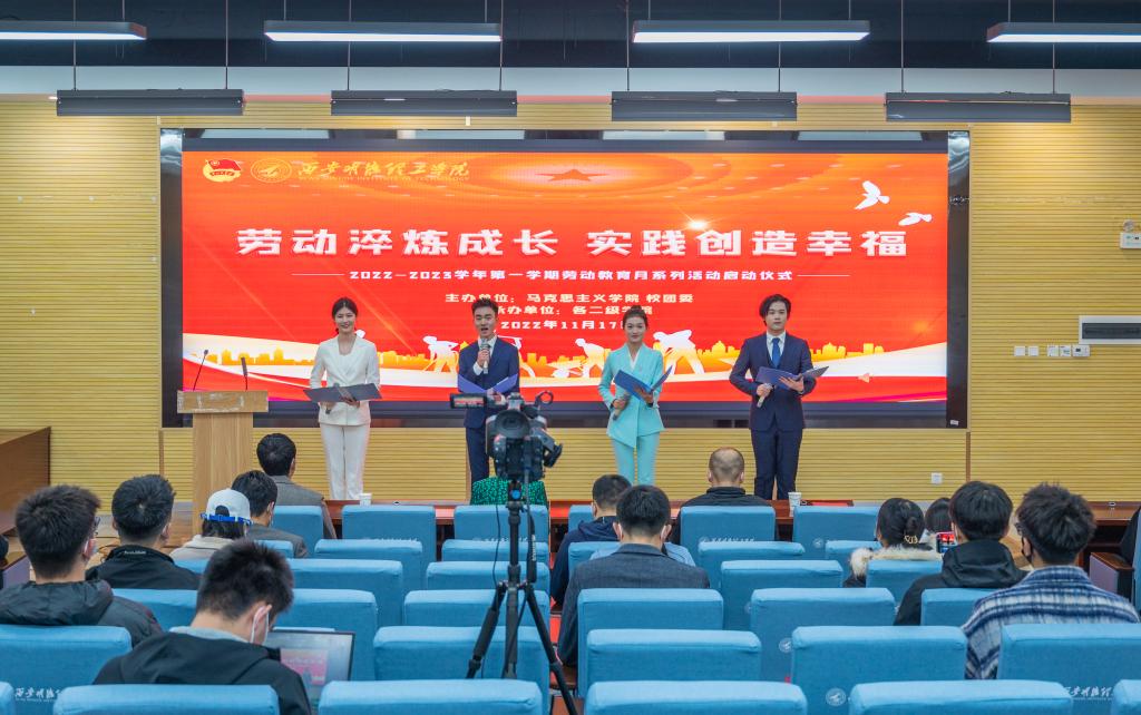 为进一步弘扬劳动精神,营造积极参与劳动的良好风尚,引导学生树立正确的劳动观念,培育积极的劳动精神,养成良好的劳动习惯和品质。11月17日,由校团委、马克思主义学院主办、各二级学院承办的以劳动淬炼成长·实践创造幸福为主题的2022—2023学年第一学期劳动教育月系列活动启动仪式在校本部和北校区分设会场同步举行。学校党委副书记董昊,全国三八红旗手、长安电气有限责任公司总经理周小莉,党委学生工作部副部长童杨梓、思政教研室主任惠斌、校团委副书记乔建,各二级学院党委副书记及劳动教育课授课教师、各年级辅导员代表、学生代表分别在线下和线上同步参加。仪式由马克思主义学院党委书记王君涛主持。