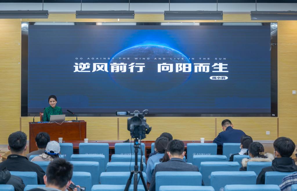 仪式后,长安电气有限责任公司总经理周小莉为学校师生作了题为《打造职场魅力、展风采、助就业》的专题报告会,她用朴实的语言、真挚的情感讲述了工作多年来的感悟,分享了百年党史中涌现出的巾帼红给自己的启示,通篇表达了对党和国家、对单位和同事、对父母与老师的感恩之情。