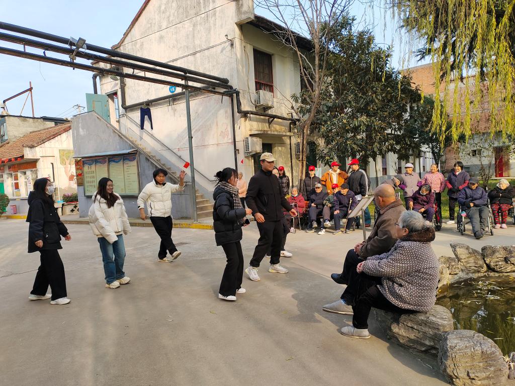 随着交流的深入,志愿者们为老人们带来了一场节目表演。他们的歌声悠扬动听,舞步轻盈欢快,将敬老院的气氛推向了高潮。老人们的脸上洋溢着久违的笑容,他们随着音乐的节奏拍手、点头,有的甚至跟着志愿者们一起舞动起来。这一刻,年龄的界限被打破,每个人都在音乐和舞蹈中找到了共鸣,感受到了文化的力量。