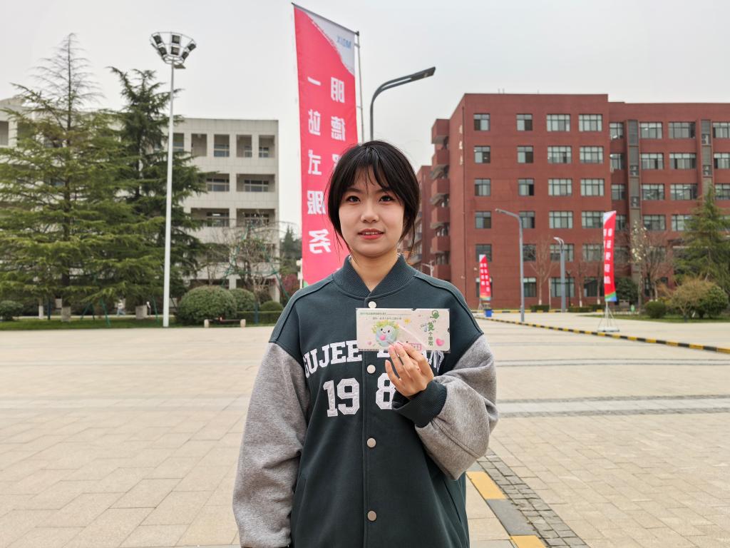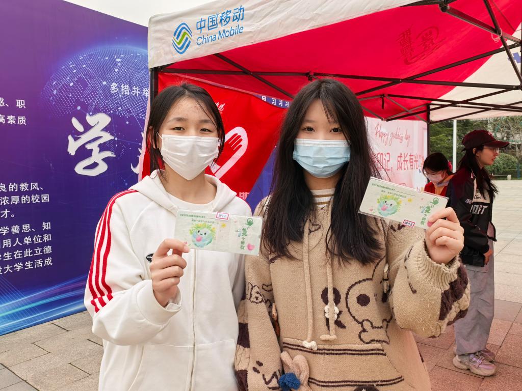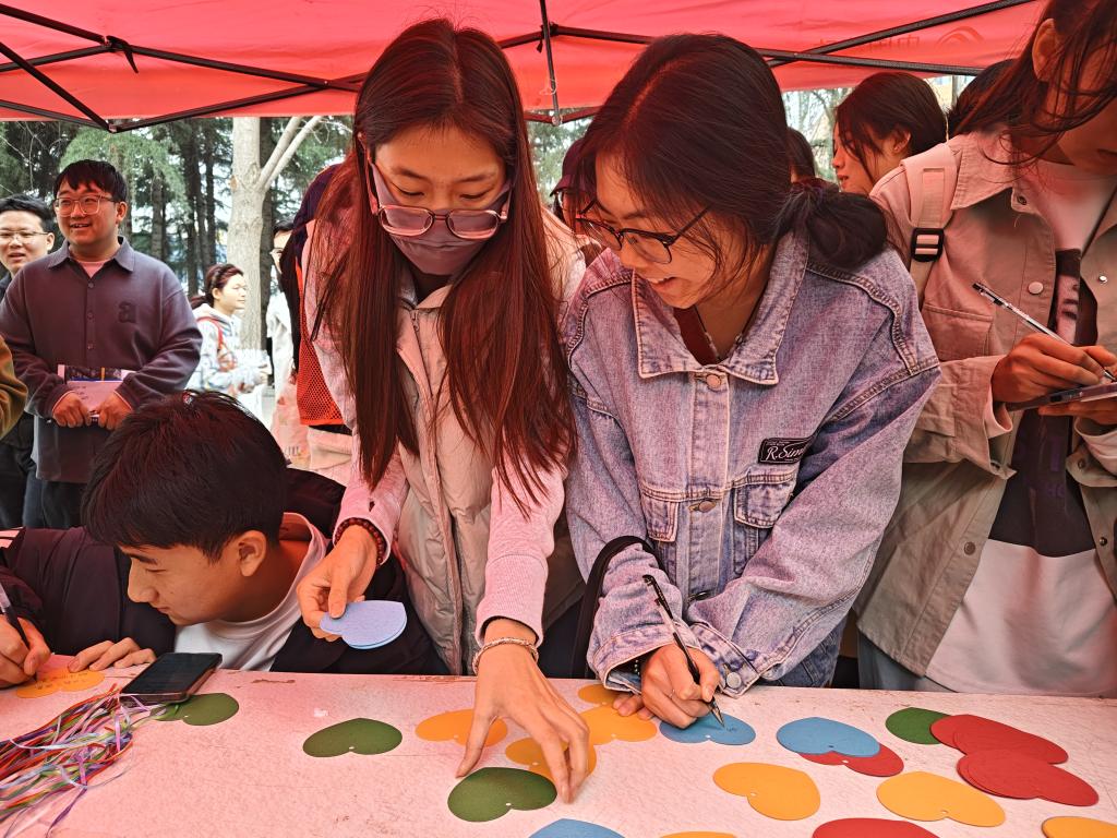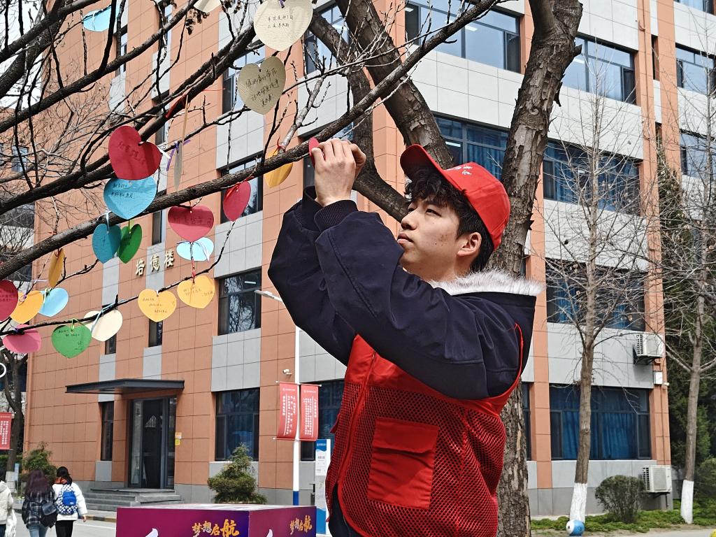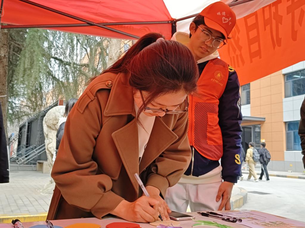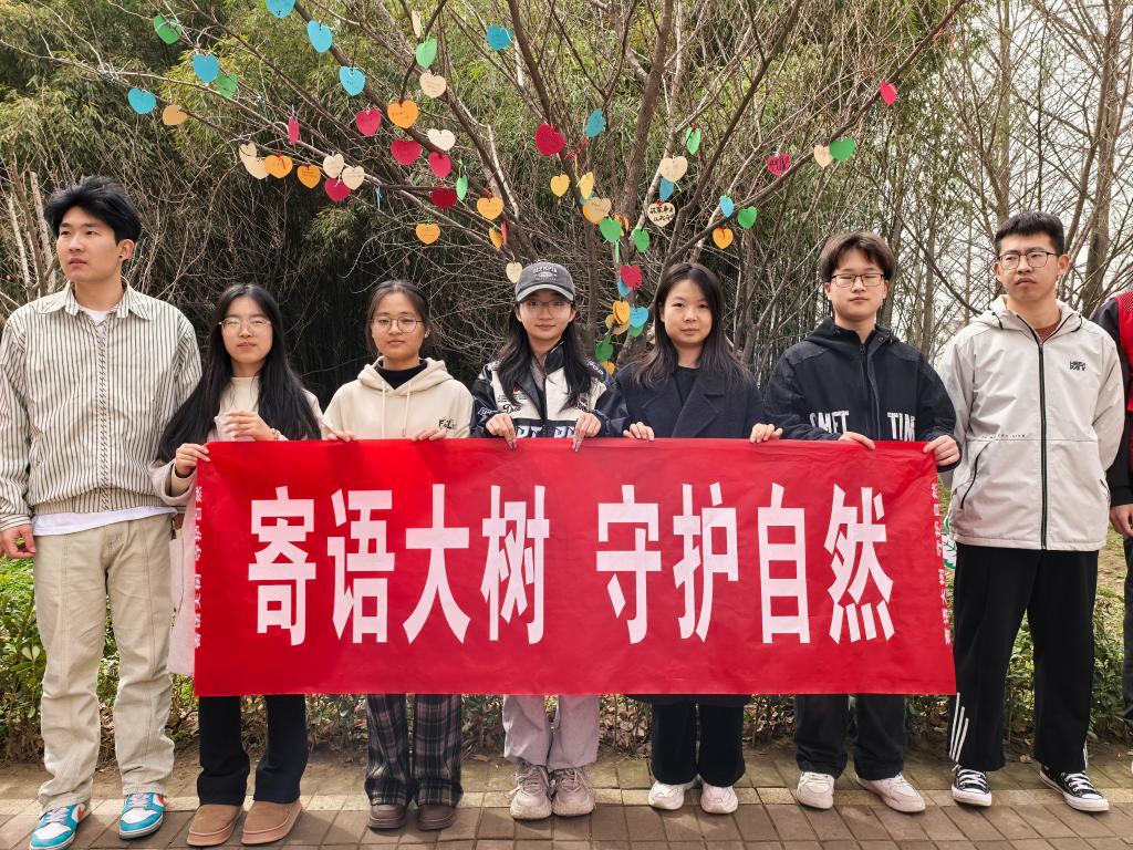 中午12点,暖阳倾洒,“寄语大树”活动在芳菲路准时拉开帷幕。活动现场,同学们的热情高涨,纷纷围聚在桌前,拿起彩笔,在精致的卡片上一笔一划地写下对大自然最诚挚的美好祝福与深切期许。有的同学写道:“愿山川常绿,万物自由生长。”微风温柔拂过,卡片随风轻摇,发出细微的簌簌声,仿佛是同学们与大自然之间的轻声对话,与周围葱郁的树木相互映衬,共同构成了校园里一道温馨而独特的风景线。大家用这样充满仪式感的方式,尽情抒发着对自然的热爱,将守护绿色家园的坚定决心传递开来。