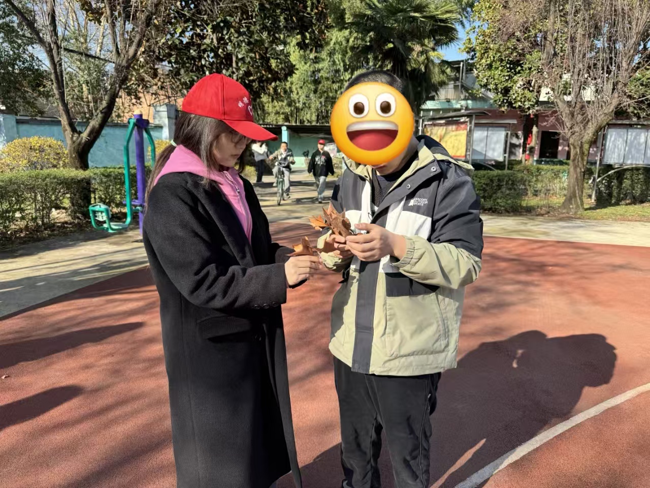 沐浴着春日暖阳,志愿者引导孩子们到户外观察花草。孩子们好奇地触摸叶片、轻嗅花朵,志愿者耐心讲解植物知识。孩子们小心翼翼采摘花草,眼中闪烁着探索自然的光芒。