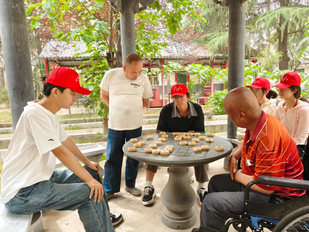 庭院中,微风轻拂,沁人心脾。棋盘之上,志愿者与老人们展开了一场场别开生面的对弈。黑白棋子在方寸之间纵横交错,他们在落子的过程中,不仅是技艺的切磋,更是心灵的对话。通过传统文化的独特魅力,老少之间的距离被迅速拉近,彼此敞开心扉,展现出跨越代际的深厚情谊。