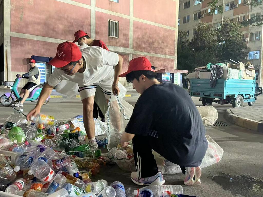 在收集瓶子的过程中,志愿者们展现出了高度的严谨与细致。他们首先小心地倒掉瓶内残留的液体,避免在后续运输过程中出现渗漏,保持环境整洁;接着熟练地将瓶子踩扁,有效节省存放空间,以便能容纳更多的瓶子;同时,认真地对收集到的瓶子进行挑拣整理,确保每一个瓶子都能物尽其用,让每一份付出都能发挥出最大价值。