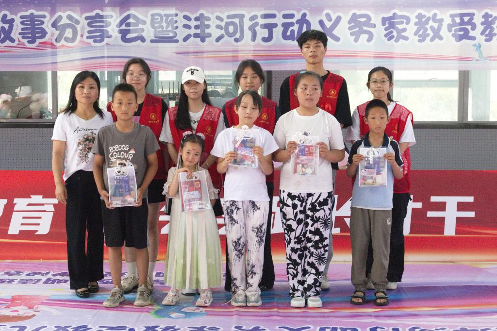 随后,活动步入了第三篇章。在沣河行动义务家教受教儿童书画大赛颁奖典礼上,获奖儿童们手捧礼品,脸上洋溢着自豪与喜悦的笑容。此次书画大赛不仅为孩子们提供了一个展示才艺的宝贵机会,更激发了他们对艺术创作的无限热爱与执着追求。