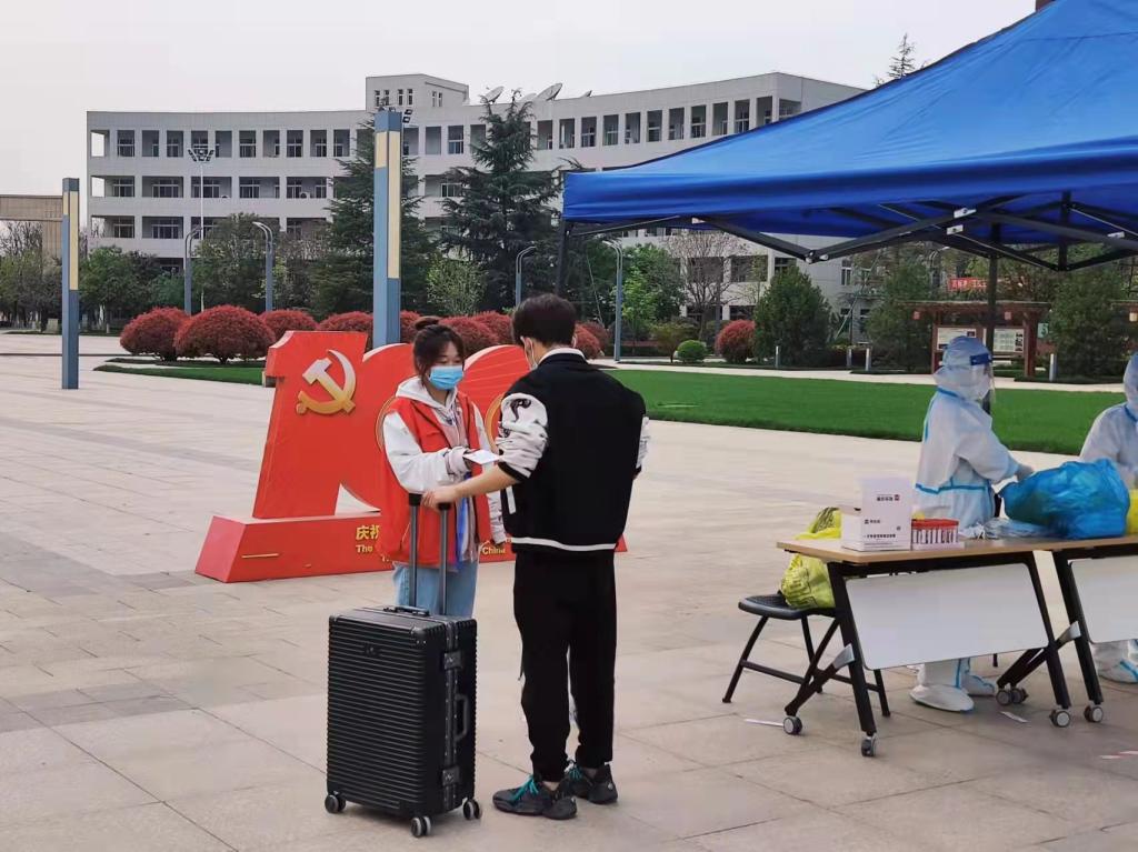 他们是核酸“引导员”。“随着疫情好转,终于回来了,我第一时间加入了青年志愿先锋队,参加了核酸检测外围志愿服务工作。虽然只有短短的六个小时,但让我更加理解赠人玫瑰手有余香这句话的含义。往后我会一直坚持志愿服务工作,不忘初心,砥砺前行。”智能制造与控制技术学院102012103班学生周孝鹭说。周孝鹭和15名志愿者一道参加了返校核酸检测协助工作,协助学校老师维持现场秩序,间隔一米有序排队。