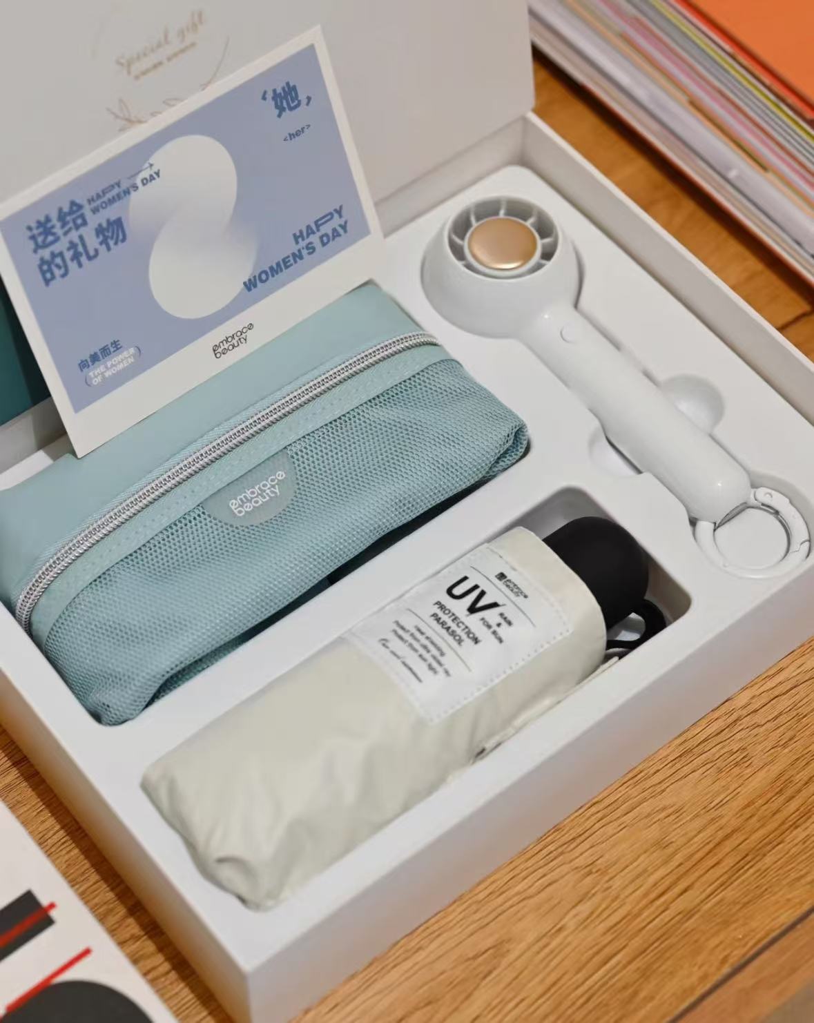 旅行套装(u型枕、毛毡包手机支架、小风扇、喜茶)