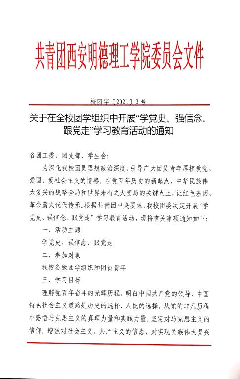 关于在全校团学组织中开展“学党史、强信念、跟党走”学习教育活动的通知