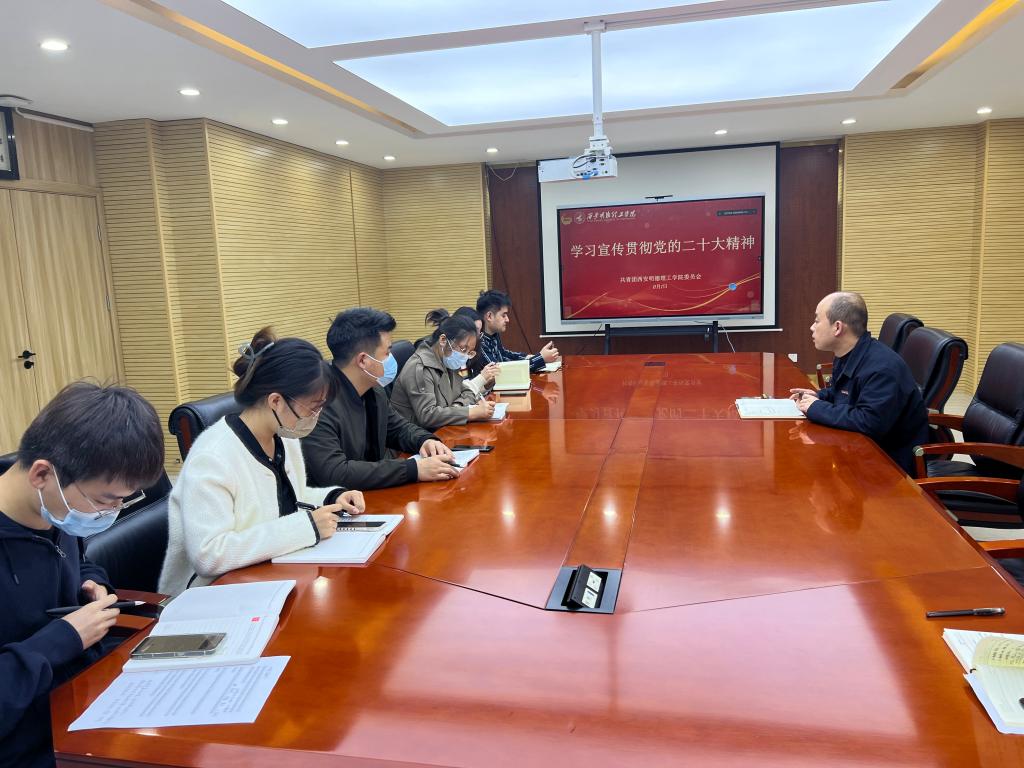 为深入学习宣传贯彻党的二十大精神,落实习近平总书记关于青年工作的重要思想,扎实有效推进高校团学改革,11月1日,校团委在明志楼南207会议室组织开展了学习贯彻党的二十大精神学习会,受疫情影响,会议采用线上线下相结合的方式进行。校团委委员及各二级学院团委书记参加会议。会议由童杨梓主持。