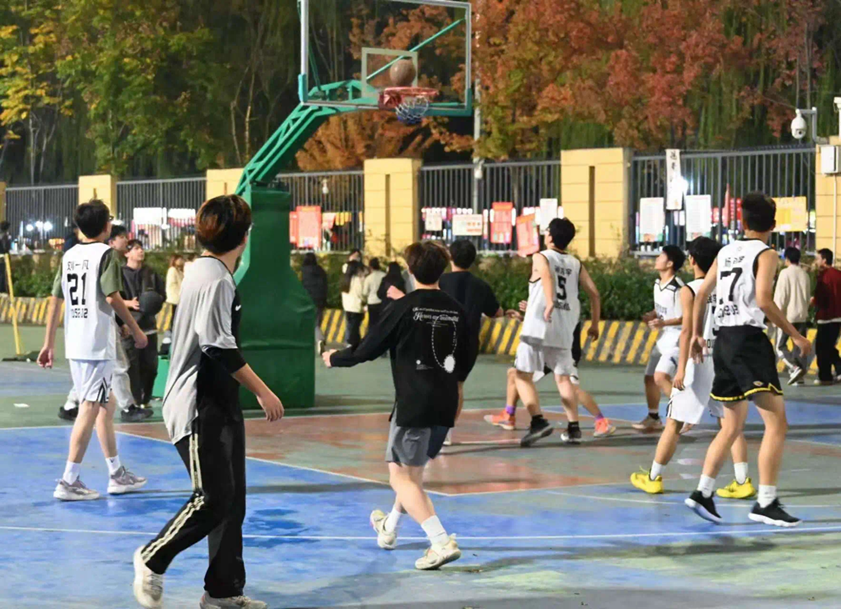 11月14日信息工程学院在图书馆后篮球场举行篮球赛。