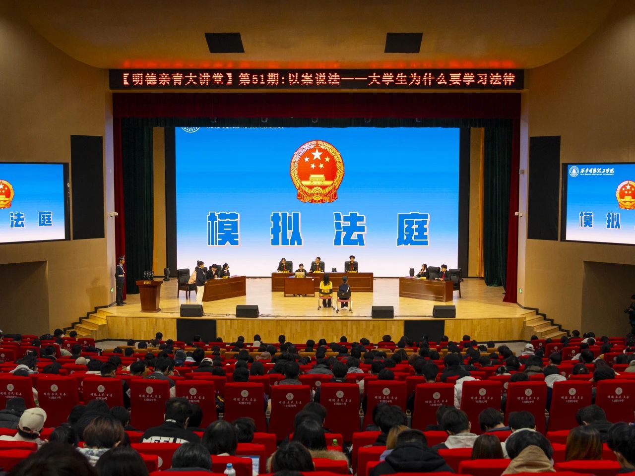 2024年12月4日,马克思主义学院联合校团委在四季廊桥报告厅开展了宪法宣传周系列讲座暨模拟法庭活动:以案说法——大学生为什么要学习法律。