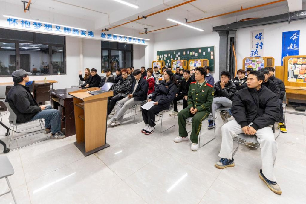 2024年11月27日,智能制造与控制技术学院在一站式活动中心组织开展了2024年秋季国防教育活动——征兵宣传暨军涯生活交流会。