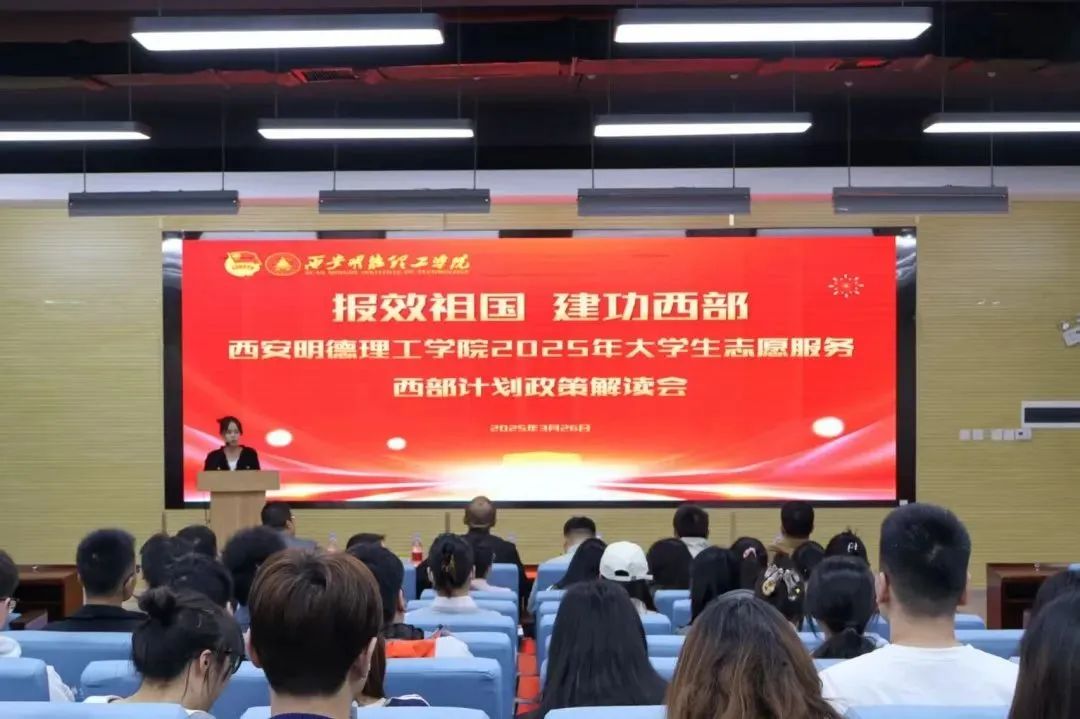 3月26日下午,学校党委学生工作部、校团委、招生就业中心、毕业班年级组在建德楼202报告厅联合召开2025年大学生志愿服务西部计划政策解读会。