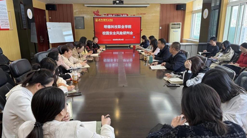 3月24日下午,明德科技职业学院在明理楼216会议室召开校园安全风险研判会。