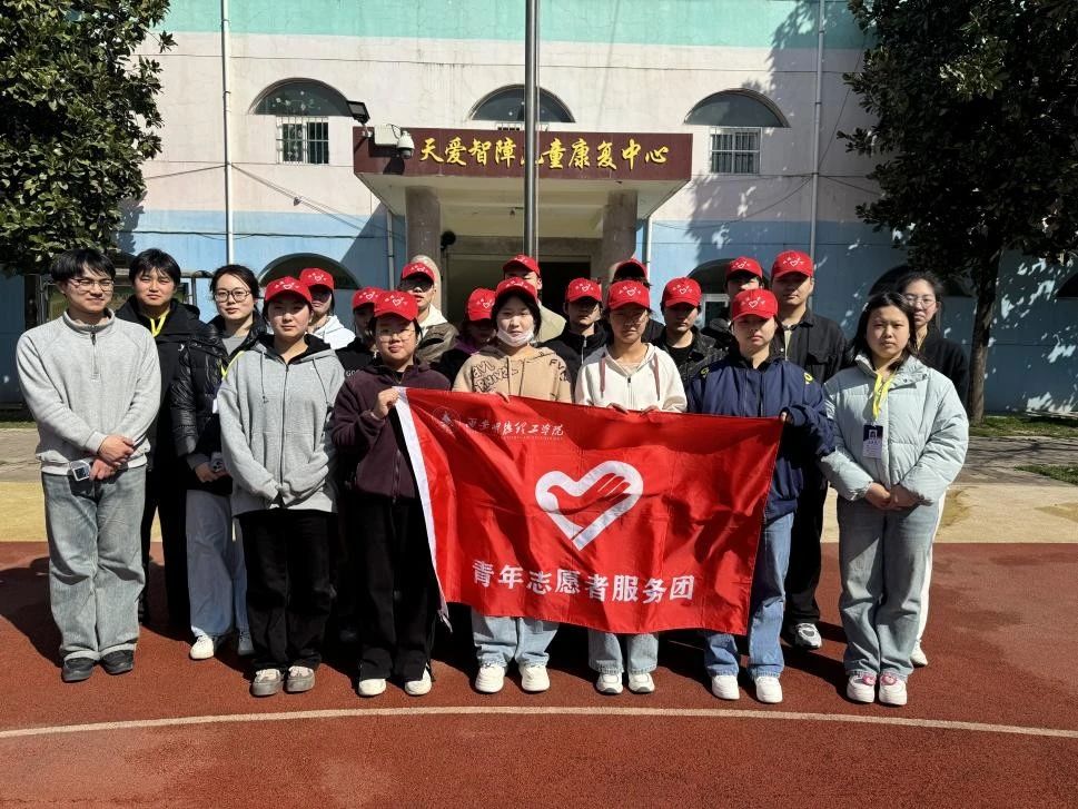 3月22日,青年志愿者服务团的志愿者们在校外开展“点亮星星行动”关爱天爱智障儿童活动。