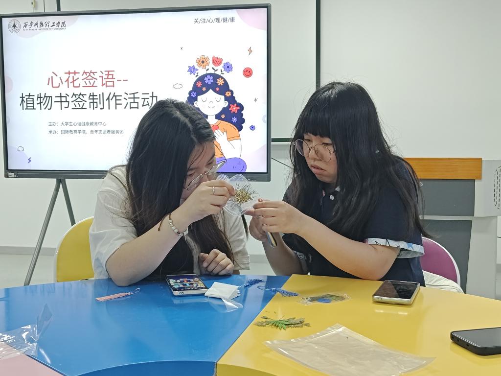 2025年5月13日晚,一场别开生面的“心花签语——植物书签制作活动”在二号实训楼(明心楼)203温馨开展。此次活动由大学生心理健康中心主办,国际教育学院、青年志愿者服务团承办,旨在帮助LETOU官网的同学们专注实践、释放压力、陶冶情操,提升创造力与心理健康水平。