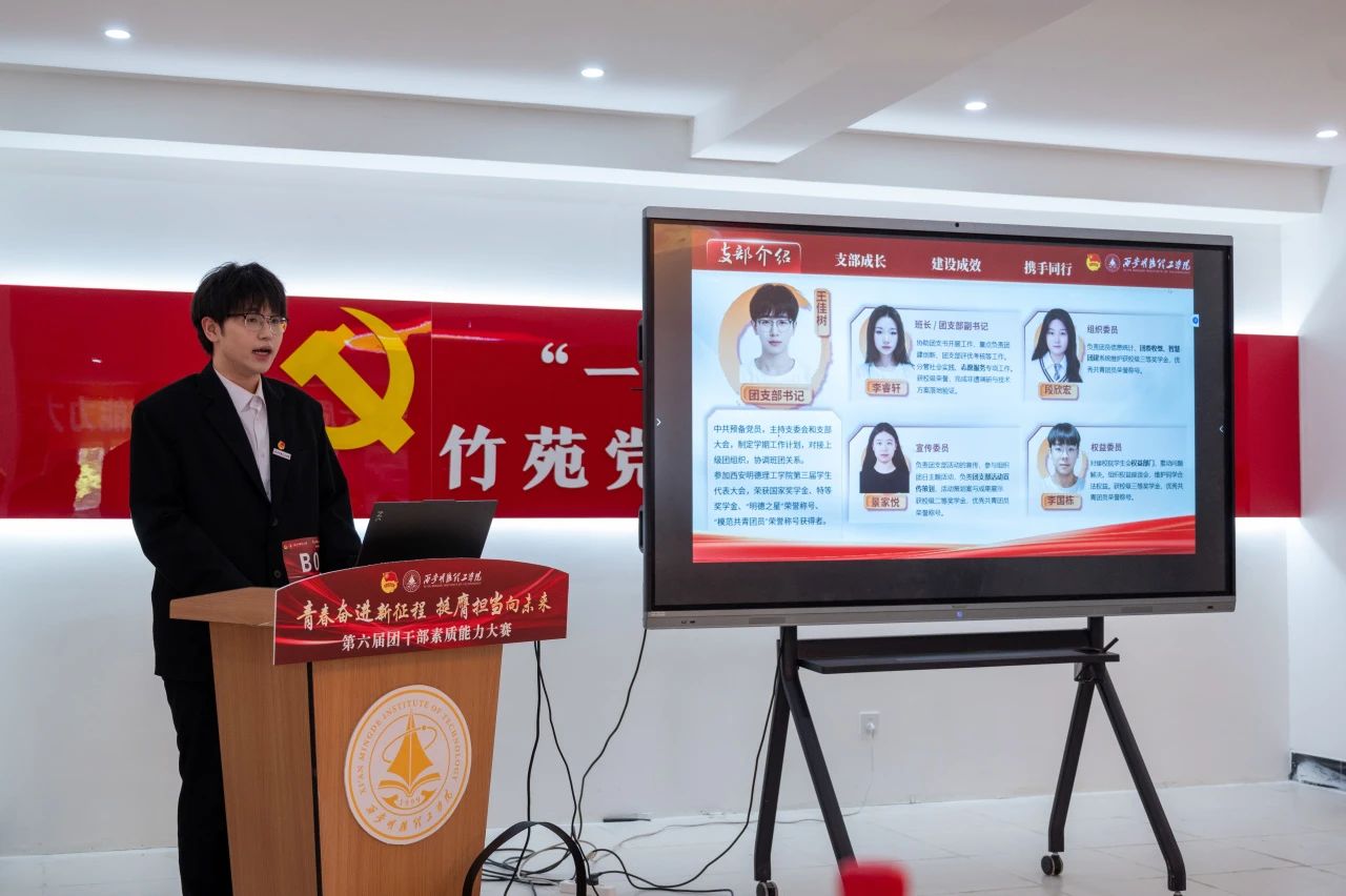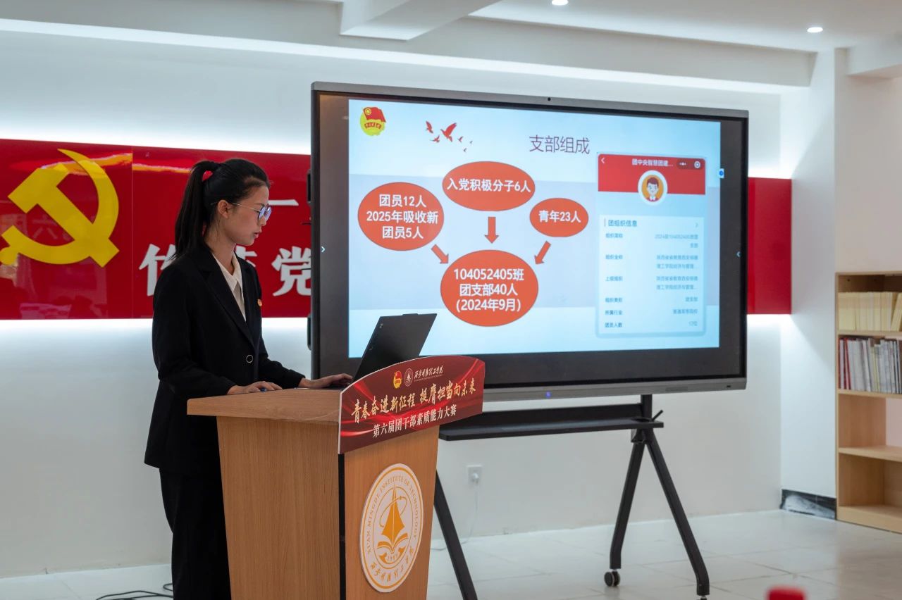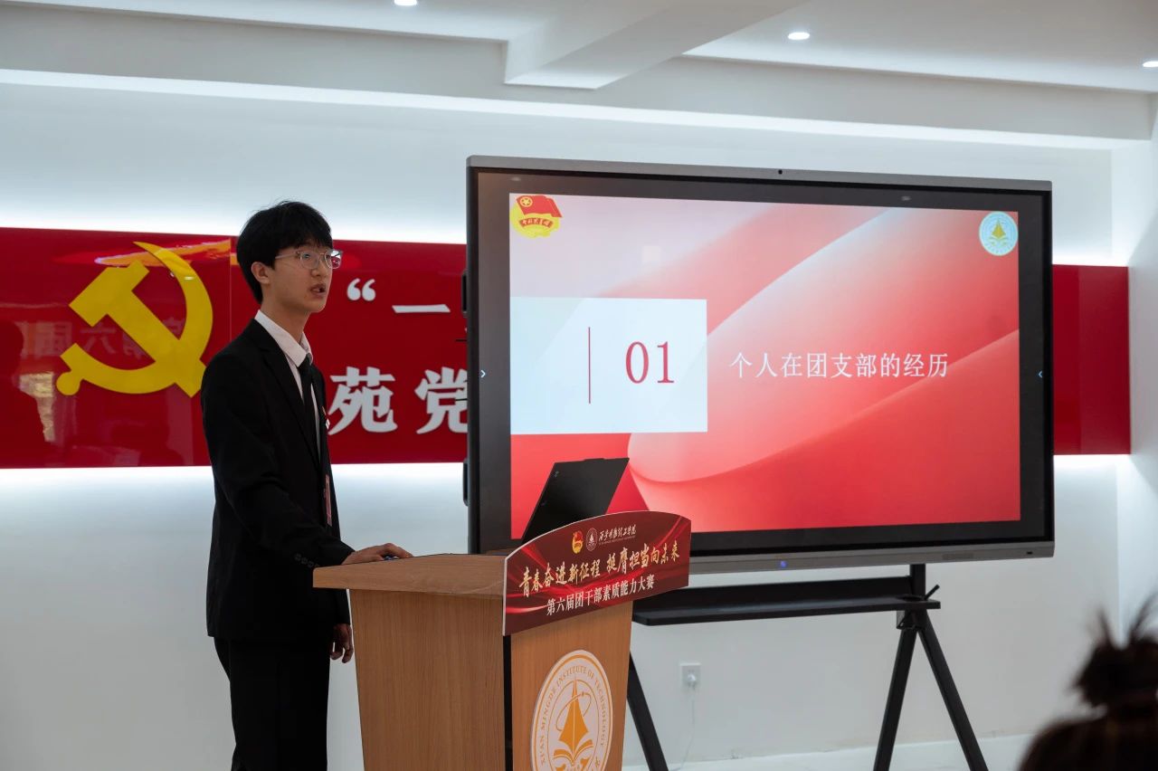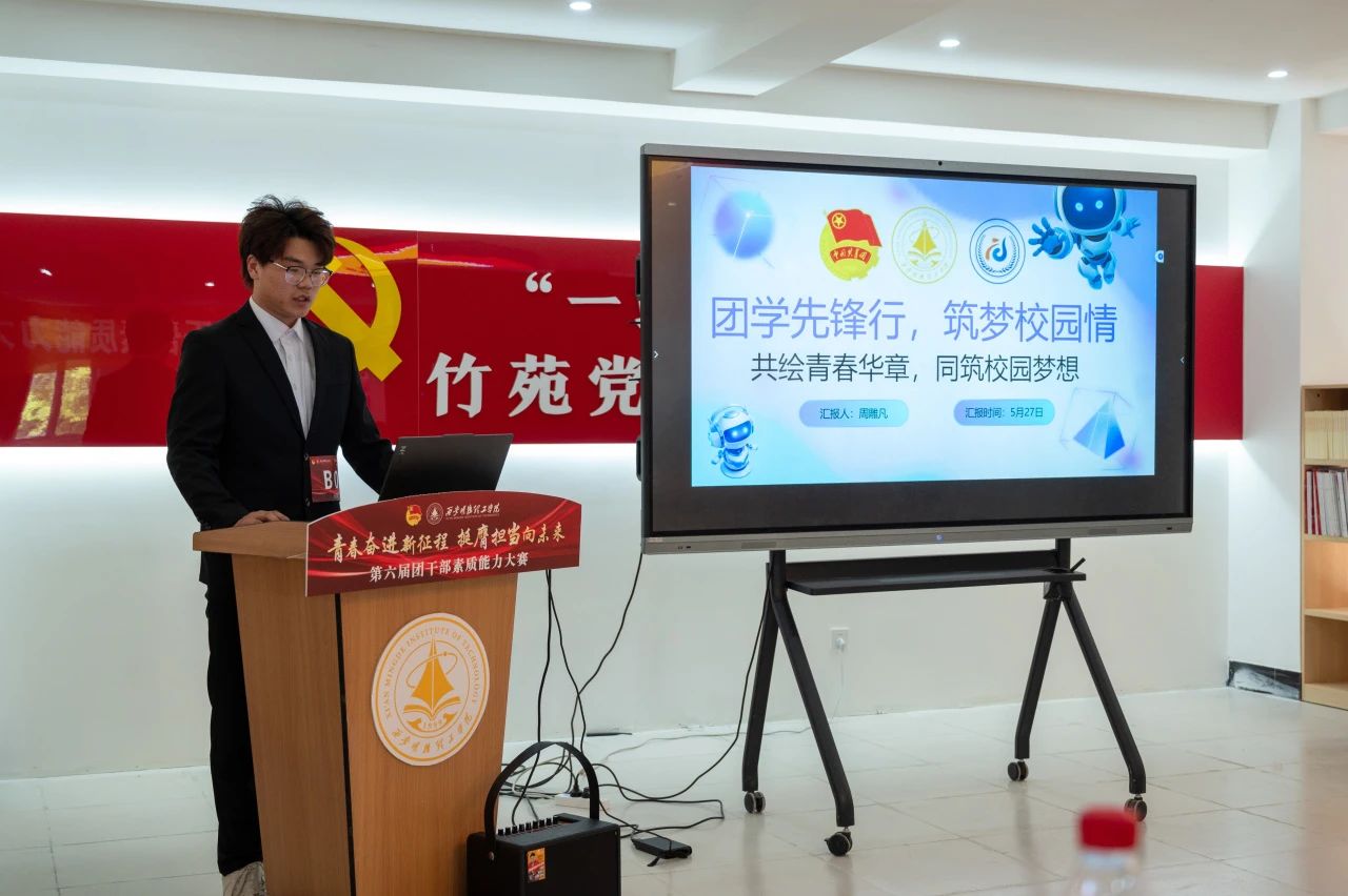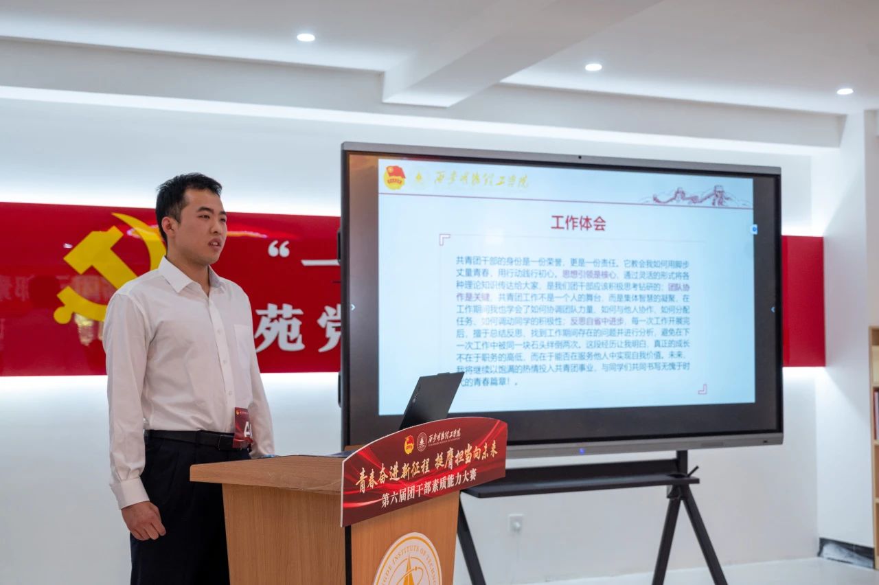 本次决赛分为“我与支部共成长”主题分享和现场问辩两个环节,参赛选手通过抽签分为A、B两组依次展示。在主题分享环节中,选手们立足支部工作实际,以“支部生活”“组织建设”“工作体会”为切入点,结合生动案例,讲述了自己带领支部成员共同学习、成长与进步的实践故事,并通过5分钟的限时陈述,将理论学习成果与支部特色活动有机融合,彰显新时代团干部扎实的理论功底和务实作风。随后的现场问辩环节中,评委围绕团务知识、工作思路、难题破解等方向展开提问,选手们在3分钟限时作答中逻辑严谨、条理清晰,充分展现了临场应变能力与创新思维。比赛全程紧扣“夯实基础、锤炼本领、服务青年”主线,重点考察团干部的政治素养、组织能力、服务意识及模范带头作用。此次大赛既是基层团组织建设的成果检验,也是团干部队伍成长的重要平台。最终,通过激烈角逐,评选出一二三等奖及优秀奖若干名,优秀选手将代表学校参加陕西省团干部素质能力大赛。