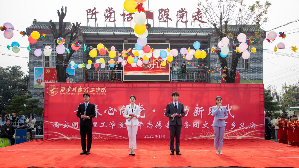 11月15日,在国际志愿者日来临之际,为积极响应共青团陕西省委“激扬青春志 共筑中国梦”的号召,学院青年志愿者服务团在长安区滦镇翁家寨村委会广场举办了以“青春心向党·建功新时代”为题的大型文化下乡义演活动。