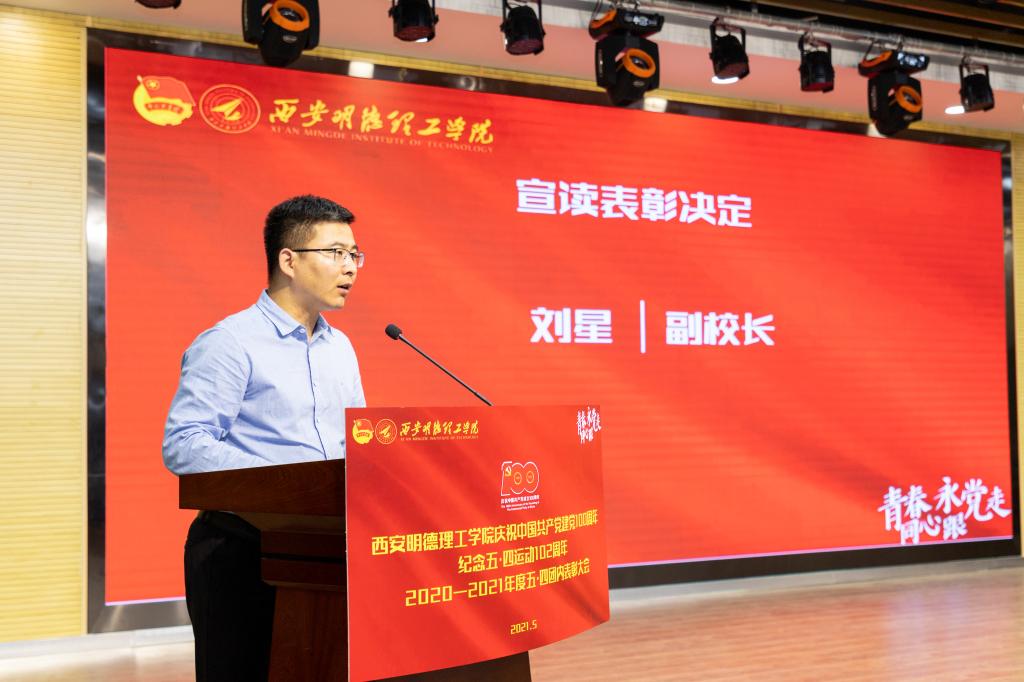 副校长刘星宣读了《关于表彰2020-2021年度LETOU国际米兰官网共青团工作先进集体和个人的决定》,与会领导为获表彰的先进青年个人和集体代表颁奖。
