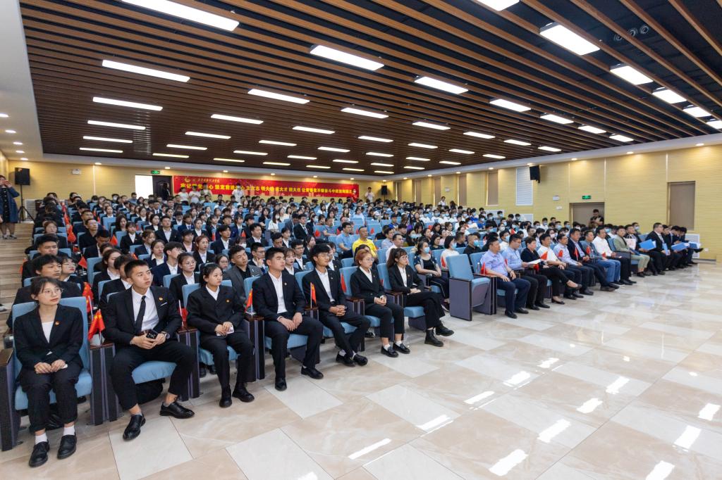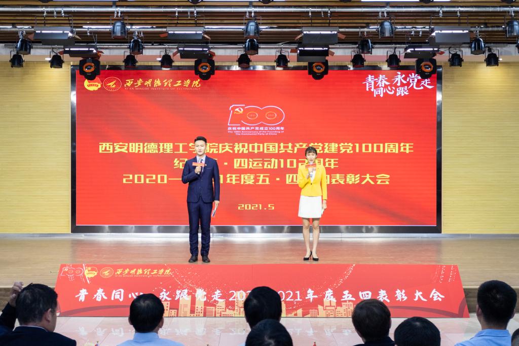 为深入学习贯彻习近平新时代中国特色社会主义思想,推进落实立德树人根本任务,深入开展党史学习教育,集中展示新时代明德学子的精神品格和价值追求,引导和激励全校各级单位、组织及师生学党史、强信念、跟党走,以优异成绩迎接中国共产党建党100周年。5月11日下午,学校在建德楼203报告厅举行了青春同心·永跟党走纪念五四运动102周年暨2020-2021年度五四表彰大会。校长杨健君、党委书记阎东明、副校长庾鲜海、王斌宁、党委副书记董昊、副校长刘星、财务总监马晓军、纪检监察工作负责人狄忠胜,各二级学院领导班子成员、职能部门负责人及受表彰学生代表等400余名师生参加了本次大会。