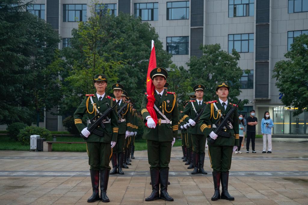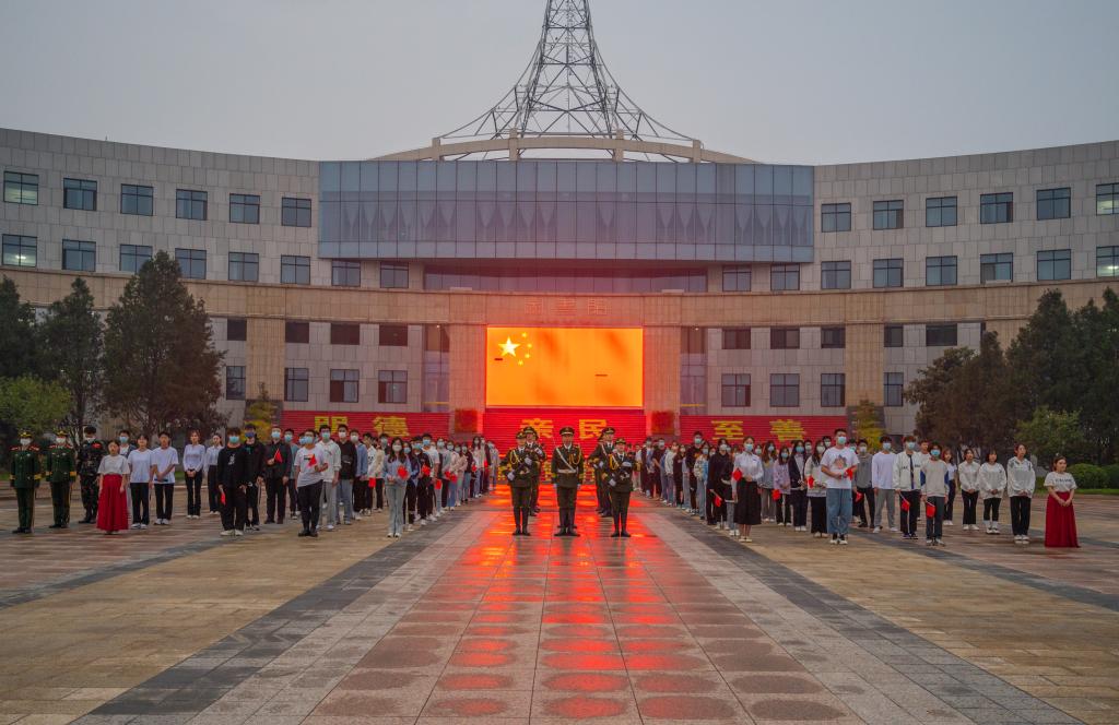 10月1日清晨,校园格外静谧和美丽,学校在校本部中心广场隆重举行“踔厉奋发新征程,喜迎党的二十大”主题升国旗仪式,在校师生代表参加了活动,太极宫校区师生通过线上直播方式参加仪式。