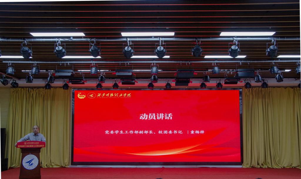 高等职业技术学院团委书记吴星澎进行分享发言。他通过介绍自身参赛经历,与大家共同分享他的参赛心得,详细讲述了他在比赛中遇到的各种问题,为大家作赛前经验指导,并鼓励大家积极参与比赛。
