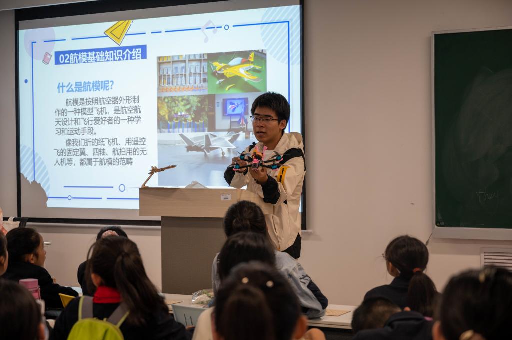进入校园后,志愿者先带领小葵花们参观了美丽校园;在一号实训楼401教室,开展了端午节历史文化交流分享活动。志愿者为小葵花们讲述了端午节的由来和习俗,为大家分享了制作香囊的方法,锻炼了“小葵花们”动手能力,使他们在情景教学中更加了解端午节的传统习俗,懂得了中华传统文化的博大精深。随后,学校航模队的志愿者们为“小葵花”们分享了精彩的航空科普知识,志愿者从航模的发展历程、结构构造、个体特点等方面进行了讲解,并带领“小葵花”们自己动手,制作了专属飞机小模型,激发了他们的航天梦。