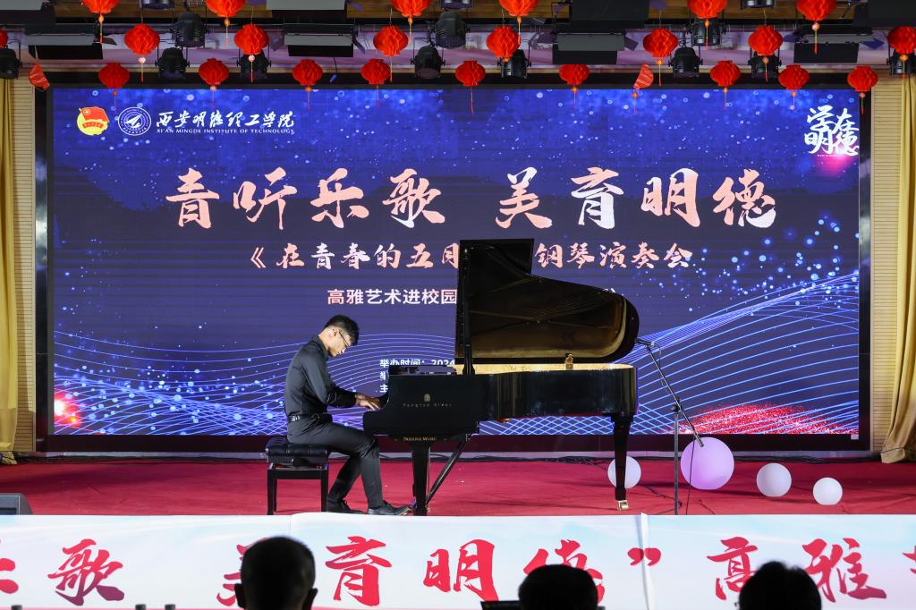 美育浸润人生,艺术陪伴成长。为全面提升学生文化理解及审美感知,5月29日,由校团委主办,语言文化传播学院团委承办的高雅艺术进校园活动“在青春的五月里”钢琴演奏会在建德楼203成功举办,活动特别邀请了来自陕西省钢琴学会、陕西省合唱协会、西安音乐学院等单位8名钢琴家为LETOU官网师生带来一场撩人心弦的听觉盛宴。学校副校长白秦川及师生代表代表400余人观看了音乐会。