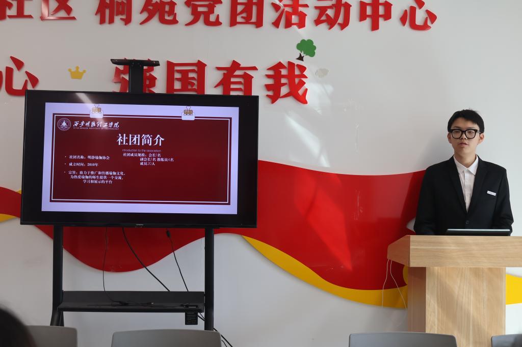 答辩会分为社团答辩和评委提问两部分。首先,各社团负责人对社团内部结构进行了介绍,同时对社团特色活动进行了阐述,指出社团的特色优势,规划了社团未来的发展。学生社团管理中心指导教师李丹妮老师,学生社团管理中心主席团成员担任本次优秀社团答辩评委。