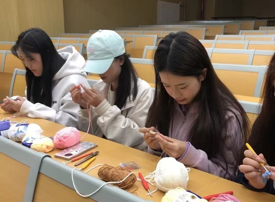 10月23日钩针编织社团开展社团活动,教授起针、锁针、短针成员兴趣浓厚 积极请教社长尽心尽责、耐心教导确保所有成员都能掌握钩针编织技巧。