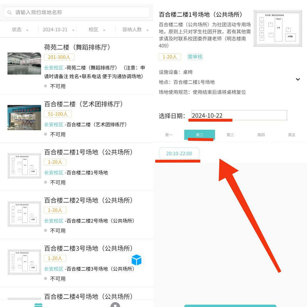 请提前完成场地的预约及审批手续提交,预约成功后请及时联系学生社团管理中心主席团成员。