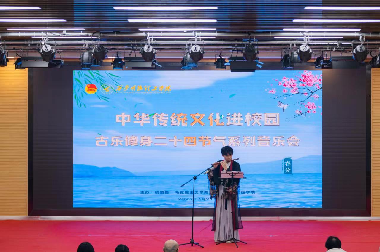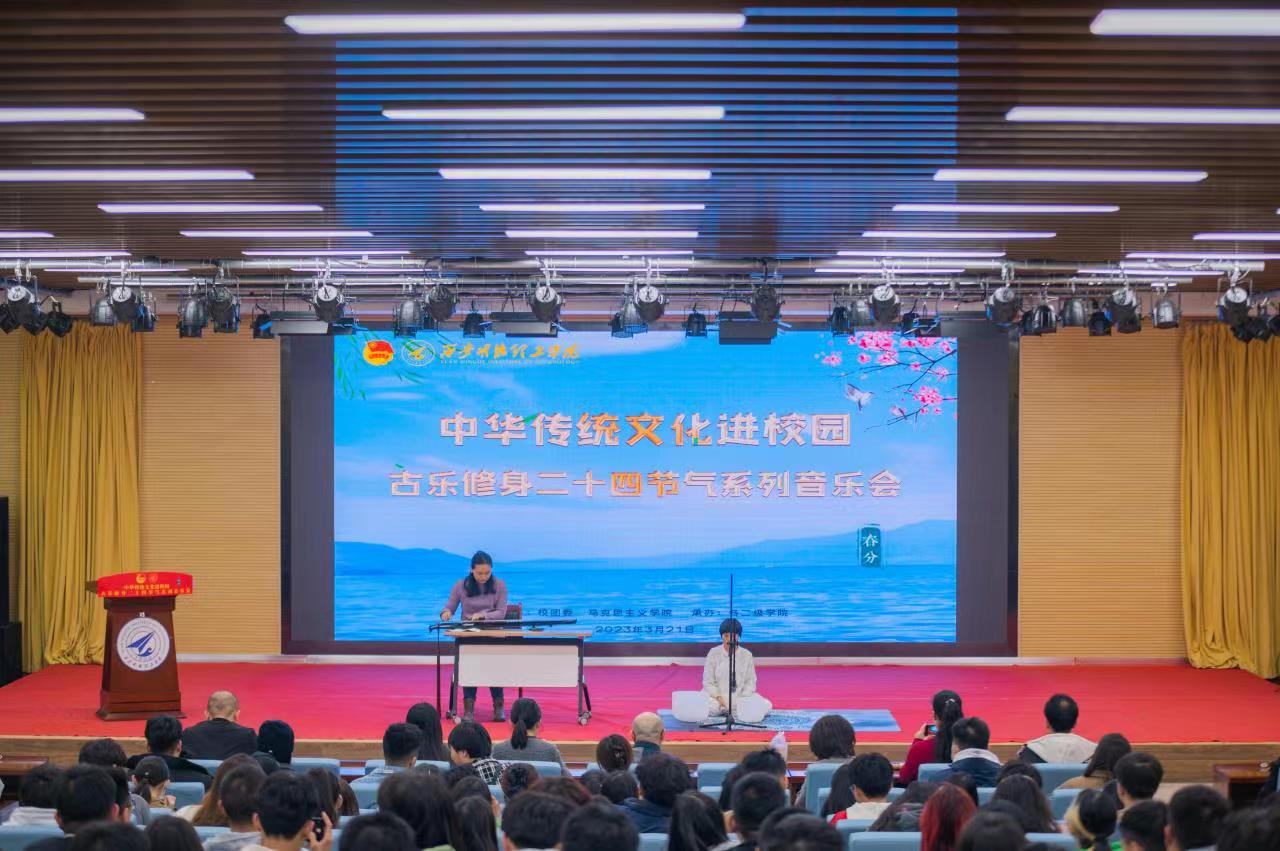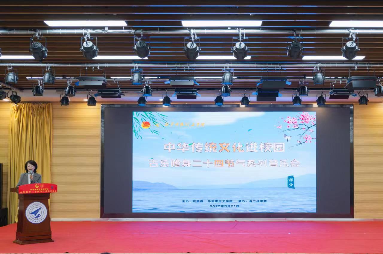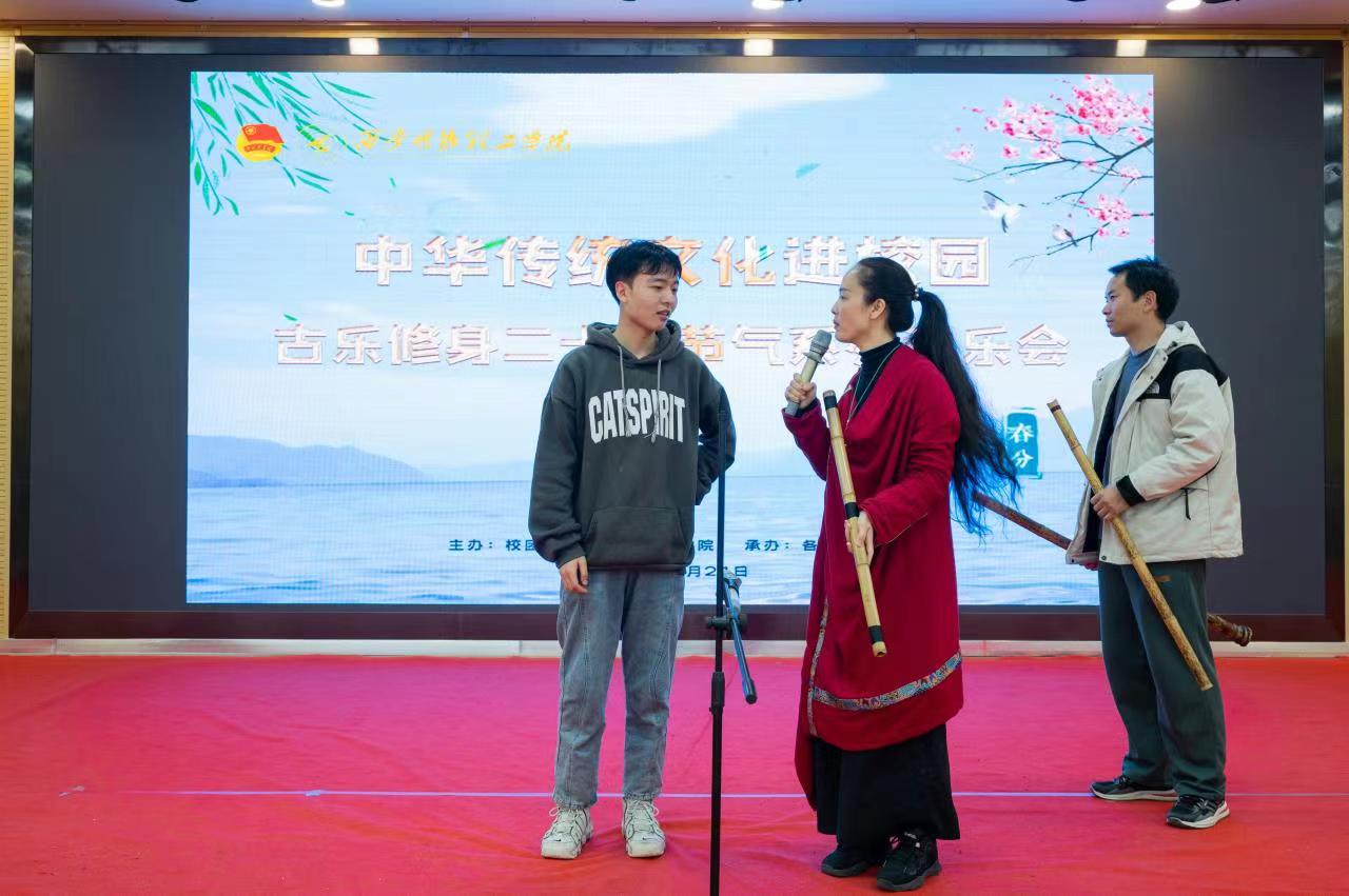 为全面贯彻党的教育方针,围绕立德树人根本任务,促进中华优秀传统文化教育在学校健康深入开展。3月21日,由校团委和通识教育学院联合主办的“中华传统文化进校园——古乐修身二十四节气音乐会(春分篇)”活动在建德楼203举办。中国战略管理研究会文化艺术中心执行主任、古乐修身二十四节气系列音乐会核心策划人贺靖瑄女士受邀参加活动。