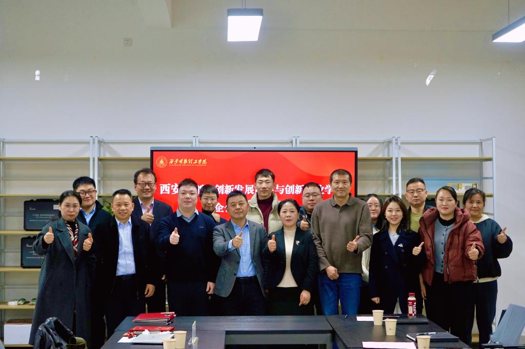 西安市就业服务中心四级调研员王芬娟、创业指导科任骐慈、西安市创业创新发展协会会长董小泰、副会长杨兴顿、秘书长吴博以及协会智库专家张哲、霍雪梅与创新创业学院副院长崔岩共同出席会议,学院行政管理及全体教师参加,会议由创新创业学院办公室主任奚颖主持。