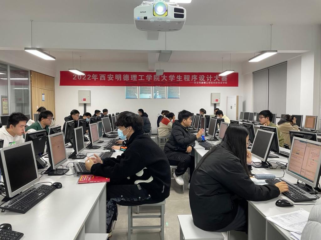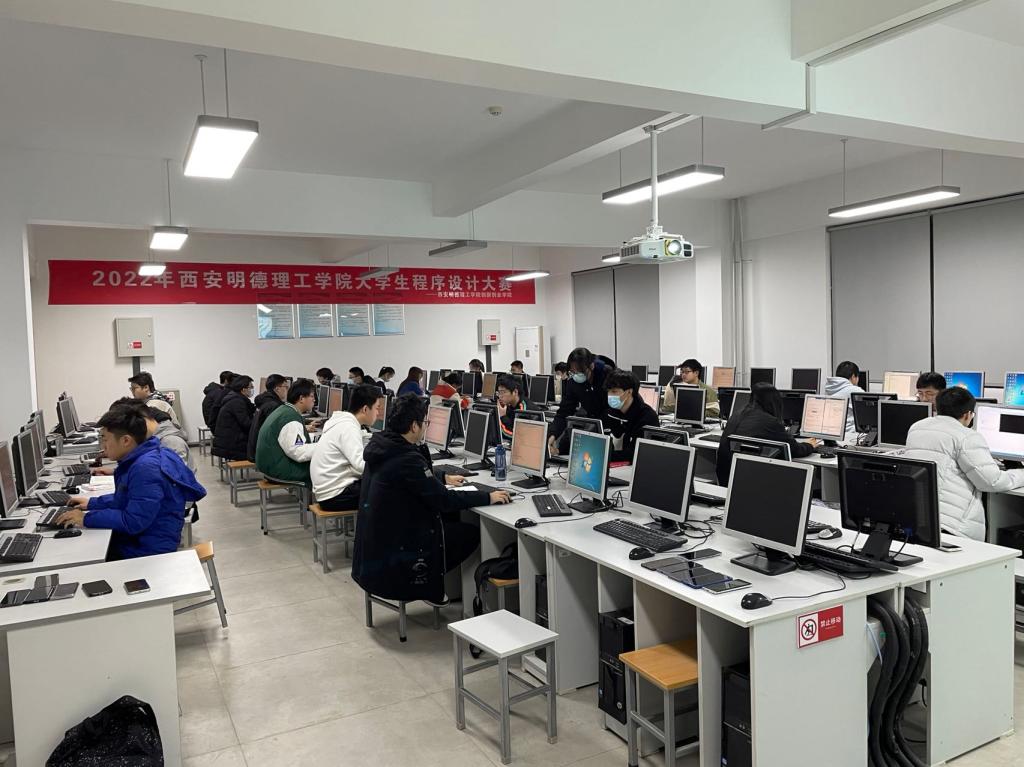 比赛于11月24日晚,在2号实训楼信息工程学院实验室举办,近90名同学参加了比赛。比赛采用个人赛制,学生可自主选择Java、C/C++或Python中的一种计算机语言参加比赛。