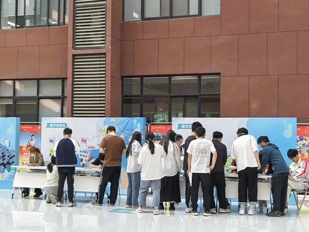 同学们在志愿者的引导下,领取活动手册、闯关打卡、扫码抽奖,活动现场井然有序的同时充满欢声笑语。