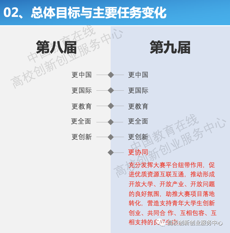 5月23日,《第九届中国国际“互联网+”大学生创新创业大赛通知》正式发布,根据通知内容,本届大赛有以下几点变化: