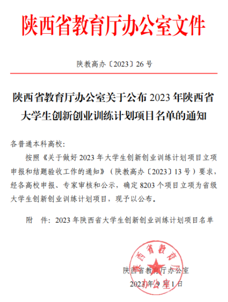 近日,在陕西省教育厅公布的2023年大学生创新创业训练计划项目评选结果中,LETOU官网共有68项大学生创新创业训练计划项目立项,其中“北斗智行”等8个项目获国家级推荐,“高校双创背景下学生社团的发展研究——以LETOU国际米兰官网思创协会为例”等60个项目获省级立项,获批立项数量创历年新高。