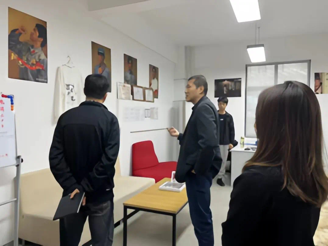 马惠铖、王欢一行在崔岩的陪同下先后参观了大创实验室和各个工作室,崔岩介绍了各个大创实验室以及工作室的详细情况,马惠铖、王欢一行人对于各工作室和实验室所取得的成就表示认可和赞扬,参观结束后,在2号实训楼北507进行座谈。
