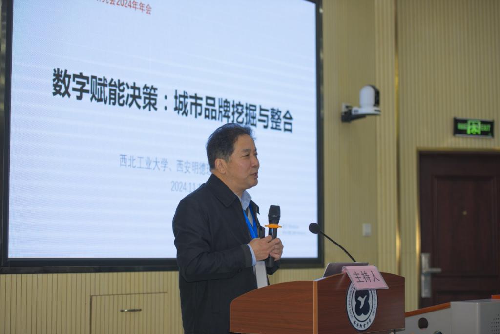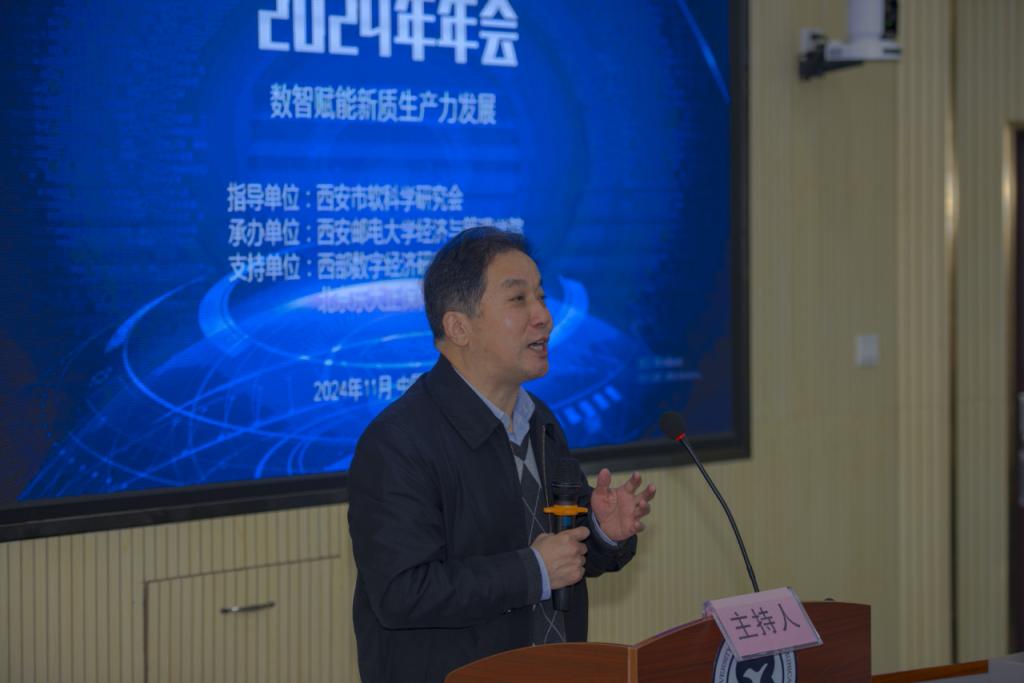 会上,西安市软科学研究会会长、LETOU国际米兰官网经济与管理学院院长郭鹏教授致辞并做主旨报告。郭鹏院长在致辞中代表西安市软科学研究会对本次大会的胜利召开表示热烈祝贺,向与会专家和学者们致以诚挚问候。他简要介绍了西安市软科学研究会概况,结合“数智赋能新质生产力发展”会议主题对如何利用数智技术赋能新质生产力和城市品牌挖掘与整合,促进经济社会的高质量发展,开创数字经济与新质生产力融合发展的新局面提出了新的理论和实践要求。