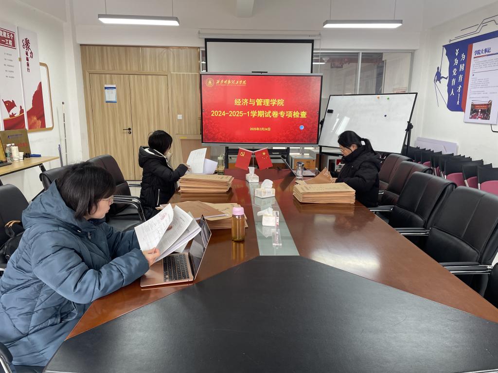为进一步加强教学管理,规范教学过程,提高教学质量,经济与管理学院于2月24日集中开展2024-2025学年第一学期试卷检查。副院长许萍、院级督导共同参与检查,本次试卷检查是在各专业自查和互查的基础上,学院进行的集中抽查。