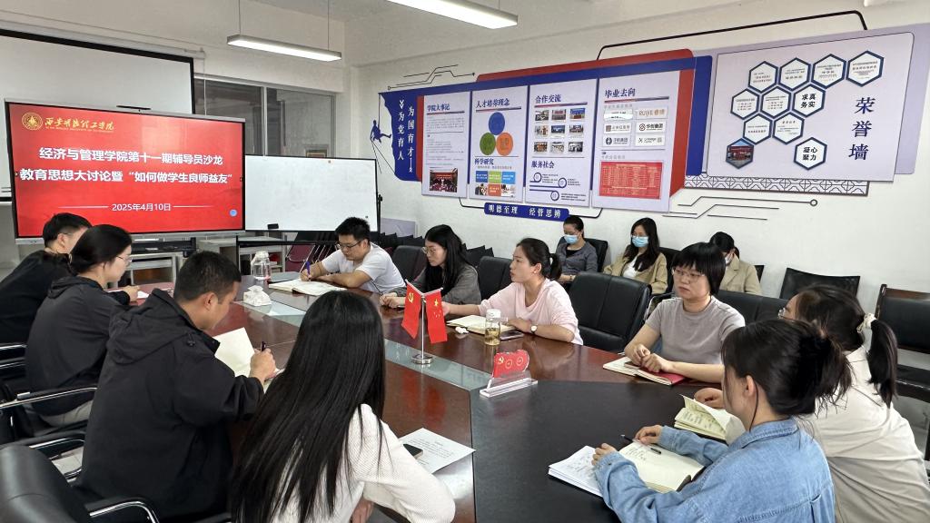 为进一步加强辅导员队伍建设,推动学院学生工作创新发展,4月10日上午,经济与管理学院在明志楼北606教室举办第十一期辅导员沙龙教育思想大讨论,活动由学院党委副书记冯纪潮主持,全体辅导员参与活动。