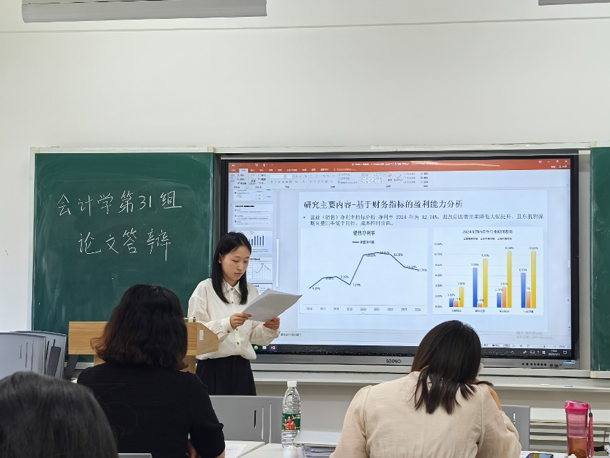 答辩由现场陈述、评委提问、学生回答、学生听取论文修改意见四个环节组成。毕业生们通过PPT展示,围绕论文选题意义、研究框架、研究内容、提出的解决方案等对论文研究工作进行总体介绍,并回答评委老师们提出的问题,充分展现了会计学专业学生扎实的专业功底、严谨的学术态度以及解决实际问题的综合能力,体现了会计学专业紧跟时代需求、服务区域经济发展的应用型人才培养导向。评委老师们严把论文质量关,秉承严谨认真的学术态度仔细听取汇报,围绕论文选题、研究方法、数据分析、文献引用、对策建议等进行了中肯点评,对毕业生的论文修改之处提出针对性的意见。