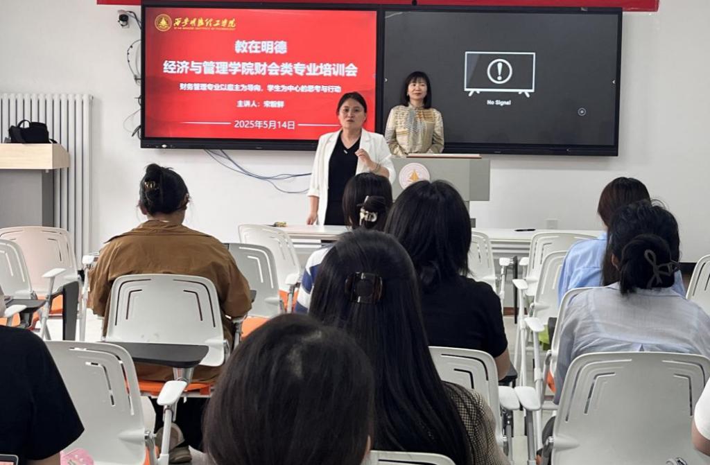 为进一步加强专业建设,提升教师教学能力和水平,5月14日,经济与管理学院特邀西安欧亚学院财务管理专业负责人宋粉鲜教授、审计学专业负责人贺鸣副教授为学院财会类专业教师做专题培训。学院副院长许萍、会计学、财务管理和审计学专业教师代表参加了培训,培训会由许萍主持。