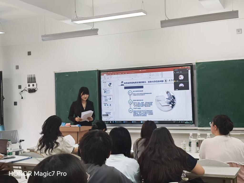 答辩现场气氛热烈,学术氛围浓厚。答辩过程中,同学们自信满满,评委老师们认真专注。每位同学都精心准备,通过PPT展示、现场讲解等方式,对论文选题、研究背景、理论依据、分析方法、核心观点等进行了全面阐述。从陕西省跨境电商的发展概况到国际经济与贸易领域的前沿热点问题,选题丰富多样,既贴近实际又具有较强的学术价值和现实意义,充分展现了同学们扎实的专业知识基础和敏锐的洞察力。