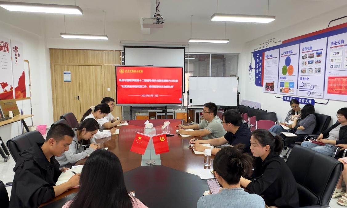 冯纪潮在总结时强调,本科教学工作合格评估是学院当前工作的重中之重,学生工作必须紧密围绕评估要求,坚持以“学生发展为中心”推动育人质量全面提升。他对下一阶段工作提出三点要求:一是提高政治站位,将评估指标作为行动指南,逐条对标、逐项落实,确保学生工作与教学评建无缝衔接;二是强化学风建设,完善课堂考勤、学业预警、榜样引领等机制,夯实评估基础;三是深化“三全育人”协同机制,以党团活动、校园文化为载体,打造具有经管特色的育人品牌,为评估增色添彩。